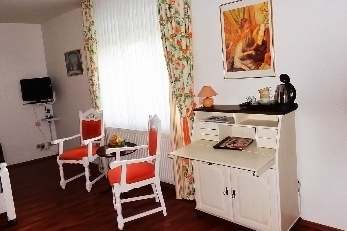 Hier spannen Sie aus, hier legen Sie den Alltagsstress ab. Bei der Gestaltung der komfortablen und geräumigen Zimmer wurde auch an die Gäste gedacht, die in ihrer Beweglichkeit eingeschränkt sind. Zu den Standards zählen Dusche und WC, Sat-TV großer LCD-TV sowie Telefon.